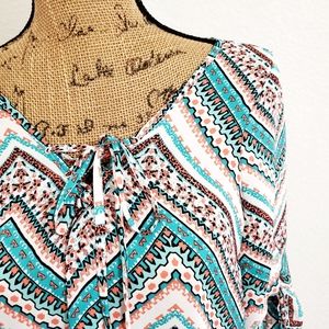 Heartsoul Flowy drawstring neckline chevron graphic top tunic Sm