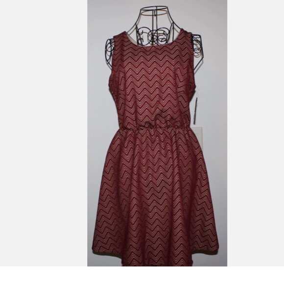 Heartsoul NWT Red Chevron Sleeveless Dress Back Zip Sz M Holiday Christmas Party