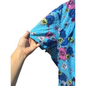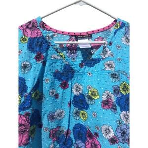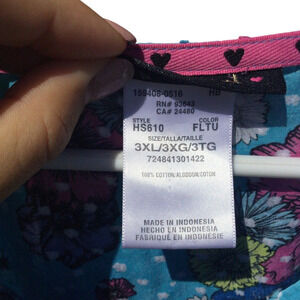 Heartsoul Womens 3X 3XL Scrub Top Blue FAloral Cottagecore Nurse Vet Tech Cotton