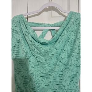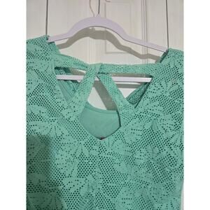 Heartsoul small juiniors mint netted scoop neck blouse with criss cross back