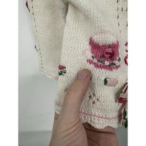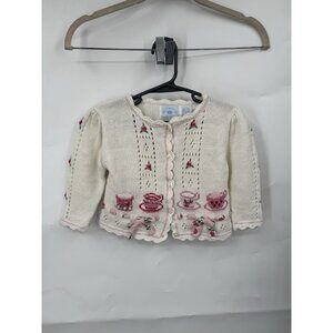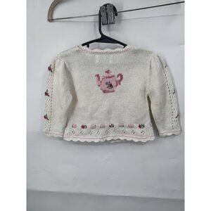 Heartstring Baby VTG Tea Time Sweater 18 Month Ivory Floral Coquette Bow