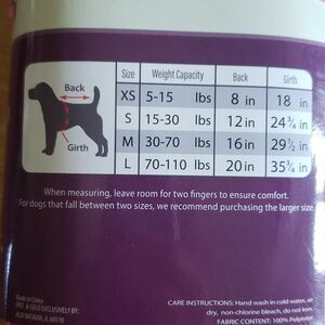 • Size: Medium — fits dogs approx. 30-70 lbs, back length ~16″ and chest girth ~29-30″ per manufacturer.