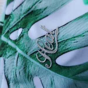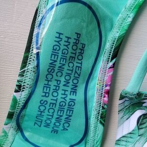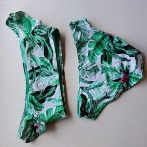 Heat Green and White Tropical Jungle Leaf Print Crop Top Bikini S NWOT