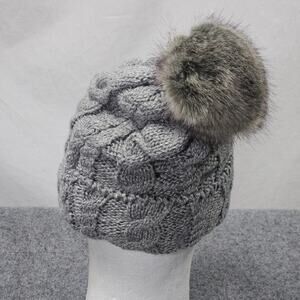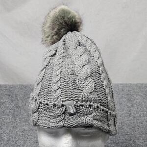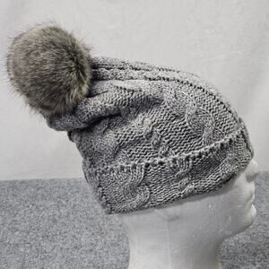 Heat Holders / Beanie Hat / One Size / Gray / Cable Knit Faux Fur Pom