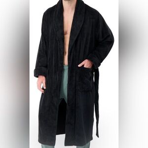 Heat Holders Men’s Spa Robe. Black Plush. One size fits most.