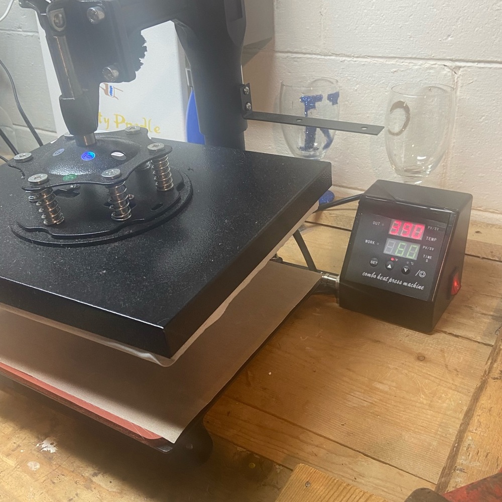 9X12 heat Press purchased 2 years ago in great condition! If you are a DIY crafter this is the perfect accessory to add to your home office. If you are into making T Shirts, mugs, hats etc. This machine is for you it has a hat press, mug press as well as plate and saucer press.