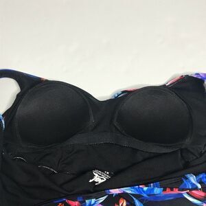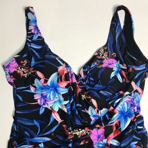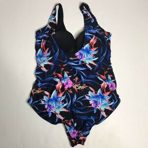 Heat Tropical Floral Print One Piece SwimSuit Size XL Black Blue Flattering