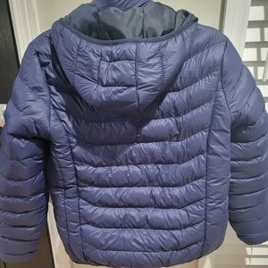 Brand new without tags. Unknown brand. Navy blue heated jacket. Four heat zones with three heat settings each. Removable heated hood.