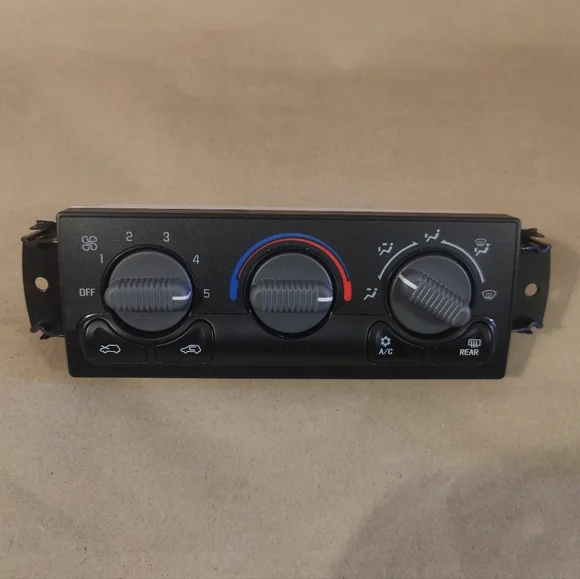 manual A/C heater climate control module for certain Chevrolet and GMC vehicles, such as the 1999-2002 Chevy Silverado, Tahoe, Suburban, GMC Sierra, and Yukon models.