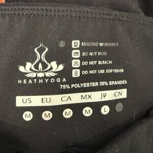 Stay comfortable and supported in these high-rise activewear leggings by Heathyoga. Made from a stretchy, moisture-wicking blend of 75% polyester and 25% spandex, these leggings offer excellent flexibility for yoga, gym workouts, or casual wear. The sleek black design features deep side pockets perfect for holding your phone or keys, and the wide waistband provides a flattering, secure fit.
