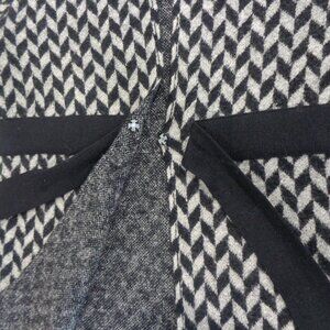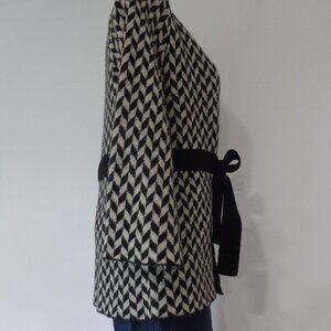 Heather B 100% Wool Sweater Jacket Velvet Tie Waist Diamond Black Gray Size M
