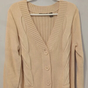 Heather B Cableknit Cardigan Tan size XL 100%‎ Cotton Long