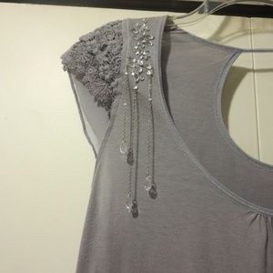 Heather B Grey Top w/ Embellished Sleeves -Medium