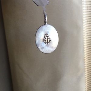 Size 4 Sterling Silver Oval Unframed with 1MM White Diamond and 14 Karat Yellow Gold Raised Star Symbol and 14 Karat Yellow Gold Raised Anchor Symbol with quote "YOU ARE THE WIND IN MY SAIL"