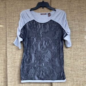 Heather B cotton tee with lace detail colors grey and black