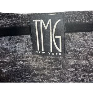 TMG New York Heather Black Ruched Bodycon Dress Womens SZ L Coquette Long Sleeve Soft Knit