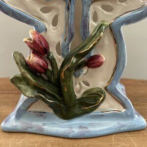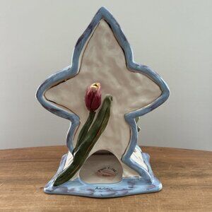 Heather Goldminc Blue Sky Decorative Ceramic Cross with Tulip Flowers Tea Light