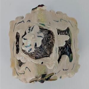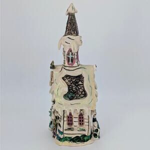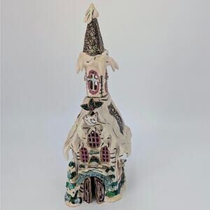 Blue Sky Clayworks. Heather Goldminc. Come All Ye Faithful Snowy Winter Church. Pre-owned. Two breaks on the backside - the holly adornment at the peak of the roof and the lower left icicle, also on the back. See photos for details and inquire with any questions. Can be lit by candle or by electric (a cord notch in the back makes this accessible) and the light can be seen through the windows on all four sides.