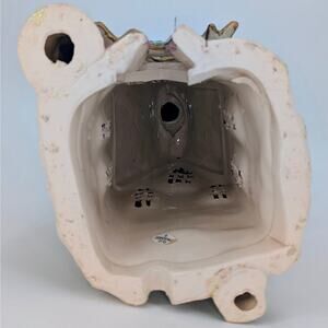 This is a charming and collectible Blue Sky ceramic church tea light holder, designed by Heather Goldminc, featuring a whimsical snow-covered cottage style perfect for holiday decorating. The piece includes glitter accents on the roof and the festive message "Come All Ye Faithful" over the door, instantly adding holiday cheer to your mantel or shelf. Despite the minor flaws, this highly detailed figurine remains a delightful, high-value display item for your Christmas village or winter decor.