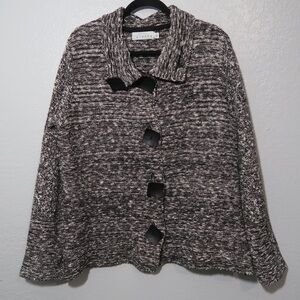Collared knot cozy Heather grey button up cardigan by Willow, made in USA, cotton blend. Good preloved condition, squared buttons have some wear - it adds character. Please see all pictures.