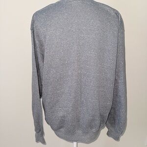 This heather gray crewneck sweater offers a relaxed fit, crafted from a soft knit material. The ribbed detailing on the neckline and cuffs enhances its classic appeal, making it a versatile wardrobe staple.