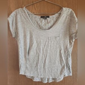 Stylish short sleeve tee with lace accents. Soft and comfortable. Perfect for everyday wear.