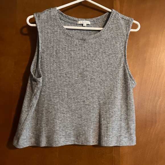 Chic ribbed muscle tee. Sleeveless design. Ideal for layering or solo wear.