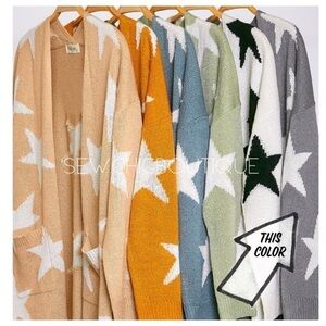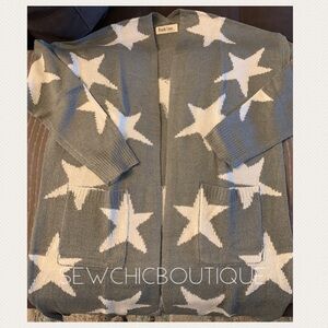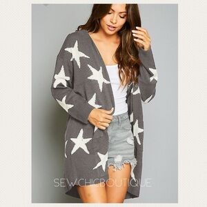 Heather Gray Star Knitted Long Cardigan featuring an open front, long sleeves, super soft fabric, drop shoulder & open bucket front pockets. The stars are big & knitted in white. I chose Gray because it’s a neutral color that will match with mostly everything. I just feel like I always choose the same colors. I also picked another long cardy in gray, sorry ladies.