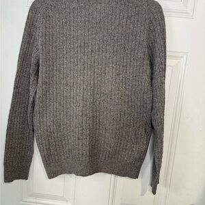 This versatile V-neck sweater in heather gray showcases a ribbed knit pattern for added texture and style. Crafted from a medium-weight wool blend, it provides warmth and comfort, making it ideal for both casual and business casual occasions. The clean finish of the V-neck collar enhances its classic appeal.