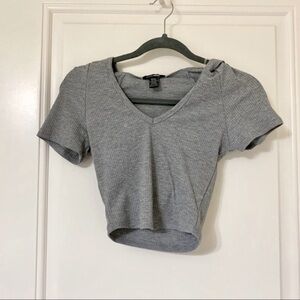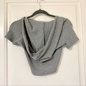 Heather Grey Ribbed Hooded V-Neck Crop Top