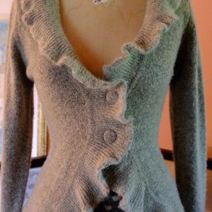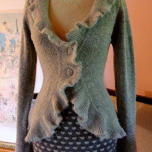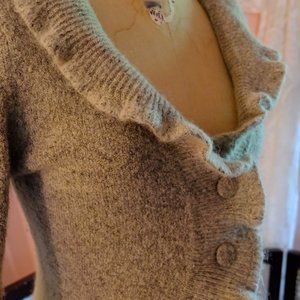 Soft and fluffy sweater with extra-long sleeves and ruffled details. Button-up front. Sexy Fit.
