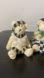 Designed in 1997 by artist Heather Hykes, these resin figurines are hand-painted with in shades of beige with black, green, and lilac accents. Features checkerboard and floral patterns. Embodying a whimsical style, these adorable bears are sure to delight collectors and fans of cute and quirky decor.