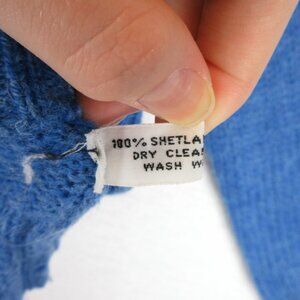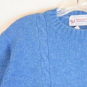 Heather Loom Vintage Shetland Cable Sweater Size 38 US L Crew Neck Cerulean Blue