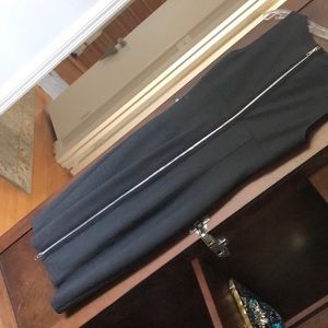 Mid-weight stretchy fabric - dark charcoal/heather gray classic cut sleeveless dress perfect for work. Very cool zipper accent down the entire back with zipper pulls at both ends.