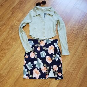 Heathered Gray Button-Up Cropped Ribbed Top