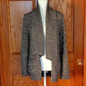 Heathered Open Front Neutral Cardigan Long Sweater Shawl Collar Patch Pockets