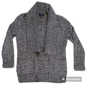 Heathered cotton blend open front long cardigan sweater with shawl collar and pockets