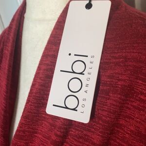 Heathered Ruby knit blouse featuring a demure/sassy surplice neckline. (overlapping V like shape neckline)
