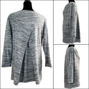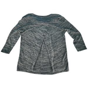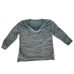 Heathered Split Back Knit Top Cowl Neck 3/4 Sleeve Blue Gray
