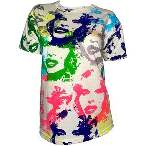 HEATHERETTE Early 2000s Richie Rich Traver Rains Multicolor Screen Printed Amanda Lepore David LaChapelle Hand Painted Knit T-shirt Of The 1960s Style Of Marilyn Monroe Andy Warhol Made In USA