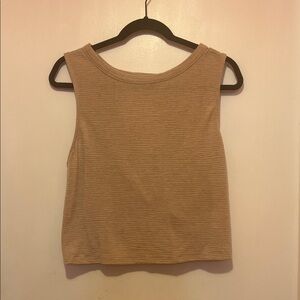 Elevate your wardrobe with this stylish sleeveless tan ribbed top. Perfect for any occasion, this versatile piece offers comfort and elegance.
