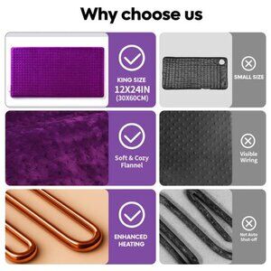 Heating Pad 12" x 24" – Fast Heating to 150°F, 2X Thicker Flannel