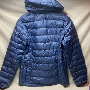 Heatk weatherproof packable down coat with detachable hood blue size medium