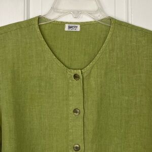 Heaven 100% Linen Womens Long Sleeve Button Front Top Shirt L Coastal Grandma