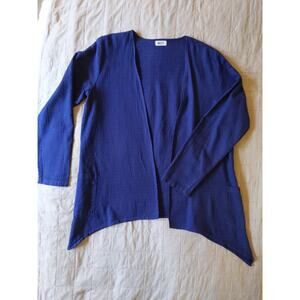 Heaven Size Small Women's Blue Linen/Cotton Waterfall Open Front Lightweight Top