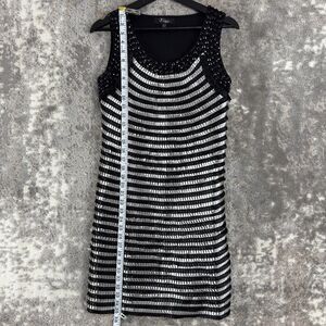 Heaven Sz 8 Beaded Sleeveless Stripes Sheath Knee Length Dress Black Silver Mesh