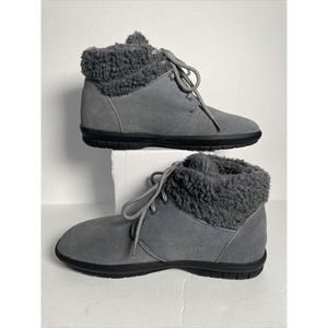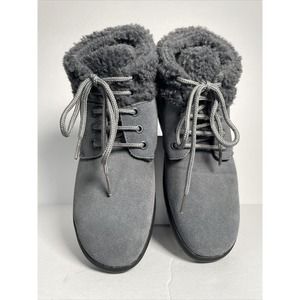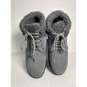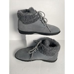 Heavenly Comfort Gray Sherpa Leather Suede Ankle Boots Size 7W Woman’s Booties