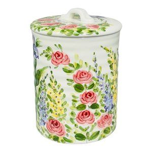 Heavenly Garden Ceramic Kitchen Cookie Jar w/Lid Floral Pattern Multicolor 6”