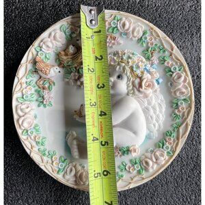 This vintage Hamilton Collection sculptural plate from 1995 features a cherubic "Heaven's Little Helper" design by Kristin. A collectible piece of delicate artistry.