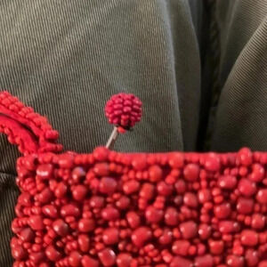 Heavily Beaded Orange Evening Bag Purse Wristlet Excellent Condition